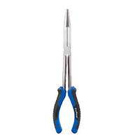 Sometimes you've gotta be able to hold a part while you're doing something to it, or you need to get a little help pulling off a hard-to-get-to wiring pigtail. That's when long reach pliers (and not just longnose or needlenose like an electronics tech might use) can be really handy. You need something that can deliver some real grip, and possibly has a side cutter at the base as well. It's a lot better to have it in your toolbox and not need it rather than need it and not have it... but chances are you're going to need it and use it way more than you might think. And of course that's not even thinking about specialty tools like snap ring pliers or brake pliers.