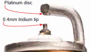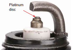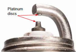 A single platinum spark plug is basically styled after a copper spark plug with a platinum disc welded to the tip of the center electrode. Since platinum is harder than nickel alloy, it holds its sharp edge for as long as 100,000 miles. Platinum spark plugs also run a bit hotter, preventing spark plug deposit buildup and fouling.