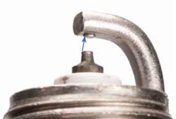 As the spark ignites the air/fuel mixture, the colder side electrode tends to “quench” the flame. To combat quenching, some spark plug manufacturers cut a “U” or “V” shaped channel into the “spark receiving” surface of the side electrode. The larger channeled area reduces quenching and allows the flame to grow more quickly. Other manufacturers split the end of the side electrode to reduce the flame’s contact with the side electrode and allow the flame to shoot straight down into the cylinder.