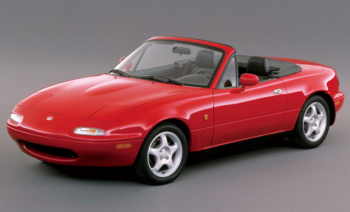 If you know me, you know that horsepower's usually what gets me going. And I mean lots of it. Tire-smoking V8s. Twelve-second quarter-miles. These days I'm thinking lustful thoughts about the new 650-hp Corvette Z06. That's where my head's at by default. But occasionally I make exceptions, and the Mazda MX-5 Miata might be the most notable one. We're talking about a tiny Japanese roadster that started out with 116 hp and still doesn’t even have 170. Like everyone who loves sports cars, though, I love the Miata. With rear-wheel drive and the Lord's own manual shifter, it's like an extension of your body on a winding road. There's a new 2016 Mazda MX-5 Miata just around the corner, but before we get to that, let's take a quick stroll down memory lane and remember where Mazda's one-of-a-kind ragtop came from.
