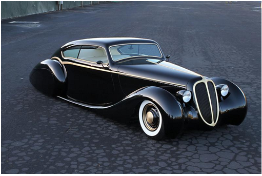 With its fastback roof and sleek lines, the Black Pearl was inspired by some of the early concept cars of the 1930's, while the chassis is based off of a 1948 Jaguar. The body was completely hand built and shaped by Marcel and Luc De Lay under the direction of Rick Dore, who's Rick Dore Kustoms built the rest of the project before the lustrous black finish was applied by Daryl Hollenbeck. In the past year the 'Pearl has made award winning appearances at The Grand National Roadster Show, winning the 2014 Al Slonaker, Blackie Gejelan and George Barris Kustom awards and The Goodguys, winning Mother's Custom of the Year and Best In Show, and was shown at The Quail and A Motor Sports Gathering, amongst others.