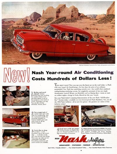 Interestingly, Nash was also the first automaker to develop modern heating and defrosting by circulating hot coolant through a heater core and then directing hot air into the passenger compartment via a fan and ducts. By the late '50s, GM's Frigidaire division, Chrysler's Airtemp group and even Packard had caught up with Nash's modern AC system.
